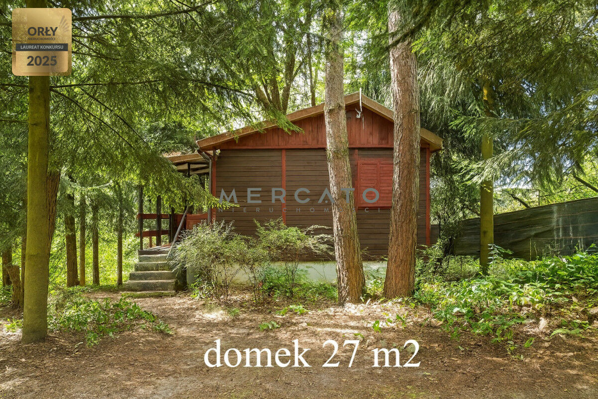 Działka: 1154 m² (składa się z 2 działek po 577 m²), w całości ogrodzona. Teren płaski, porośnięty pięknym starodrzewem sosnowo-brzozowym, zadbany i zagospodarowany.