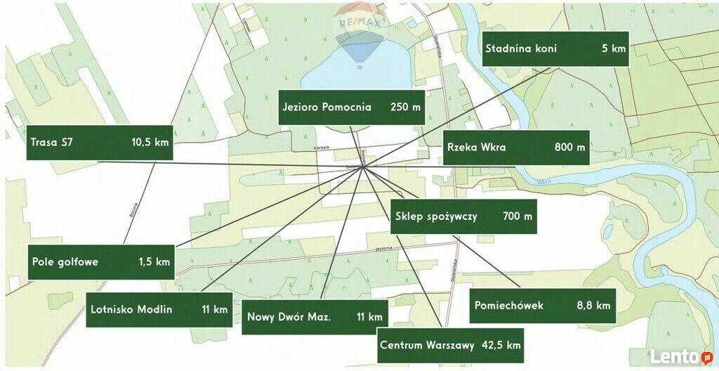 - Pomiechówek 10 km, świetnie skomunikowany, z dostępem do linii